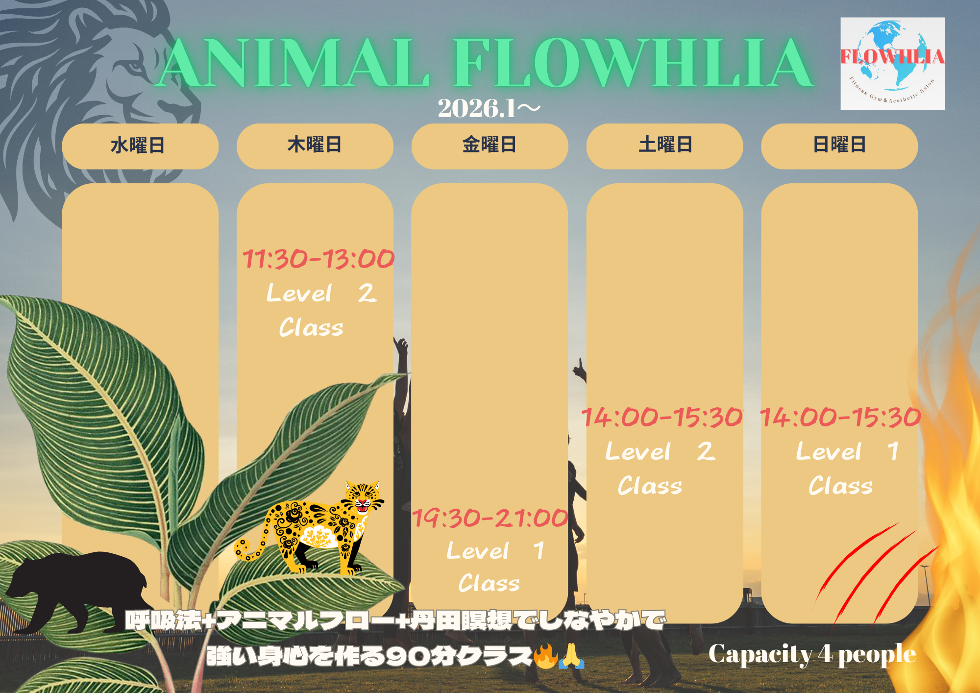 ✔アニマルフローでしなやかで強い身体を手に入れる。